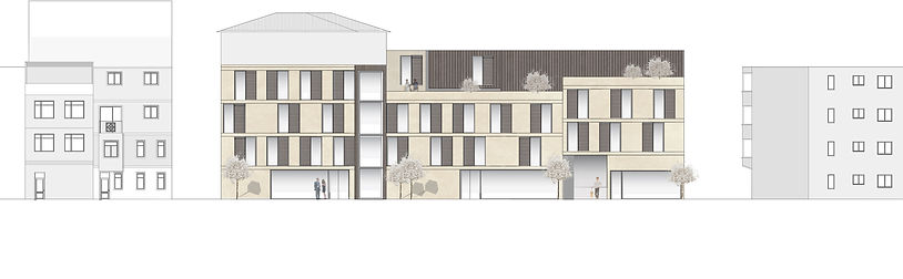 Balat is located in a hilly area. The project is built on different levels. 1.50m high difference generates two buildings and so differents vertical circulations. The shape of the project reflect the atmosphere of balat thanks to the wood material used for the circulation blocks and the persiane on the facade. The global shape present a 4 levels difference line for a better integration of the neighborhood shape.